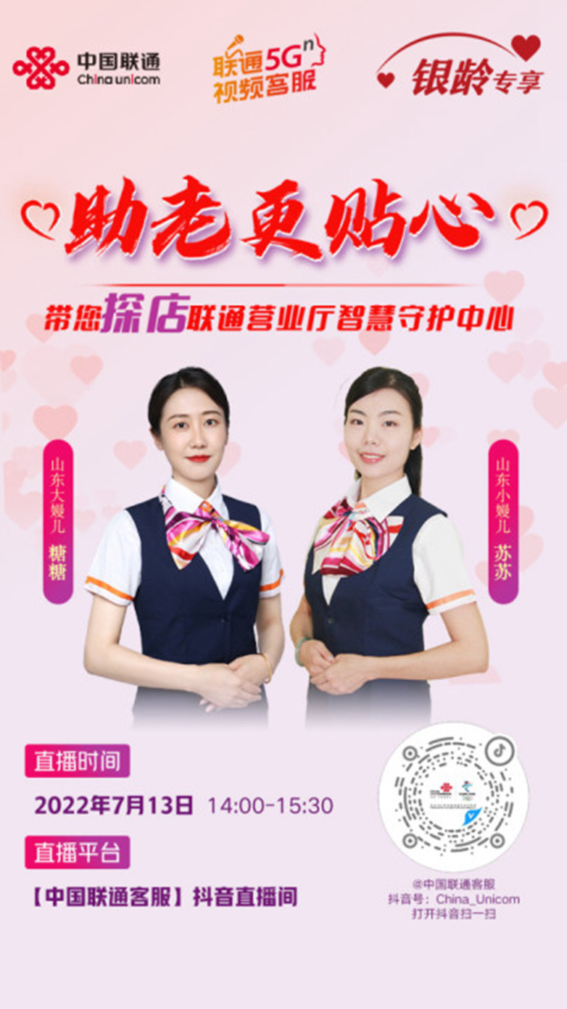 7月13日下午两点,山东联通两位线上主播与广大网友们相约在“中国联通客服”抖音直播间,伴着泉城济南雨过天晴的凉爽,主播们走出直播间,带大家探店济南联通八一营业厅,全方位体验联通营业厅智慧守护中心的助老服务,一同感受“科技助老,联通美好”。