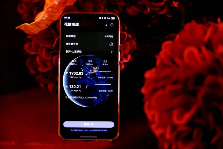 为打造极致体验环境,山东移动在品鉴会现场部署了260M带宽的3CC(三载波聚合)超大带宽5G-A网络。即使在人群密集的场景下,网络仍保持稳定流畅,支撑嘉宾实时进行高清直播、大文件速传等深度操作。华为Mate 80 RS非凡大师在5G-A网络赋能下,性能得到充分释放。现场手机屏幕上呈现的“中国移动智慧观赋”专属左显标,更同步关联全球通客户身份标识,将无形的高速连接与有形的尊享身份融为一体,化为可视的专属标识,成为嘉宾体验与分享的焦点。
