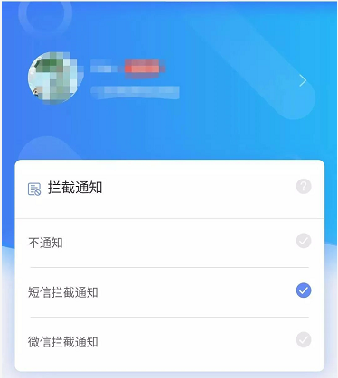 拦截有三种通知方式可供选择,分别为:不通知、短信通知、微信通知,用户可以根据自己的喜好来选择相应的通知方式。