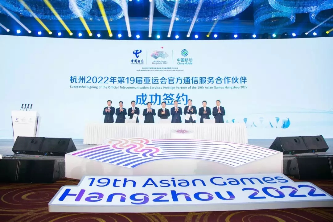 7月11日,19届杭州亚运会组委会与中国电信集团有限公司、中国移动集团有限公司在杭州签约,两家通信业巨头正式成为第19届亚运会官方通信服务合作伙伴,将联手为杭州亚运会提供通信保障。