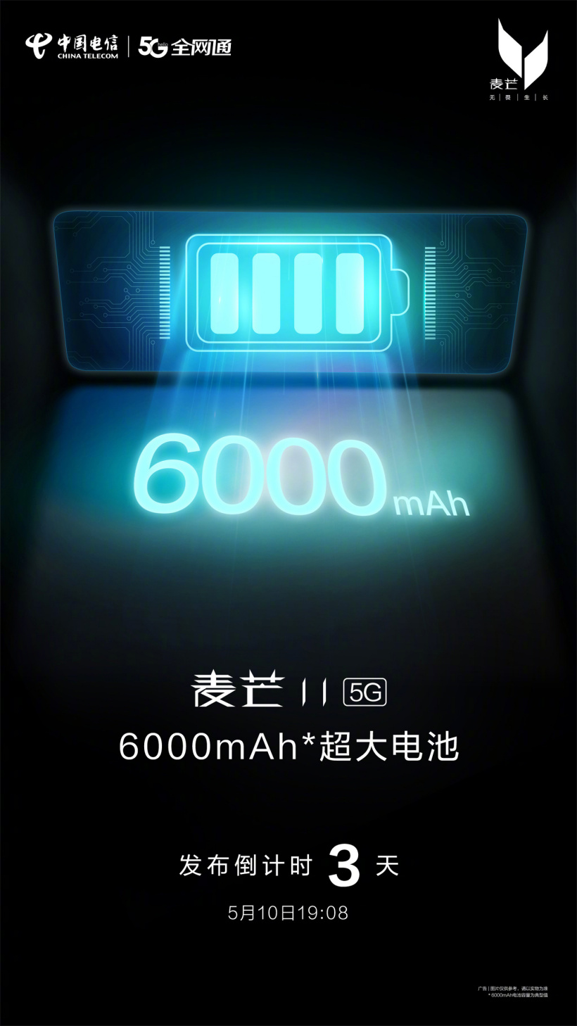 据介绍,麦芒 11 搭载 6000mAh 超大容量电池,将带来超强续航,告别电量焦虑。