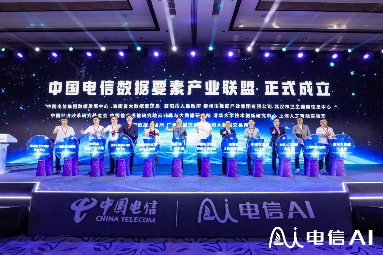 论坛上,中国电信数据发展中心携手海南省大数据管理局、襄阳市人民政府、中国信通院云大所、中国经济改革研究基金会、上海人工智能实验室、清华大学技术创新研究中心、泰州市数据产业集团、上海数据交易所、广州数据交易所、贵阳大数据交易所、武汉卫生健康信息中心,共12个合作单位和企业发起数据要素生态联盟,加速释放数据价值,共同推动人工智能探索进程,助力数字中国蓬勃发展。