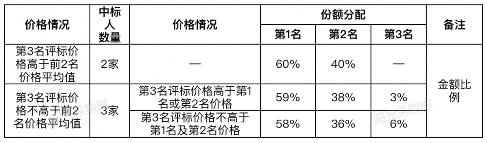 每个中标人对应的份额如下: