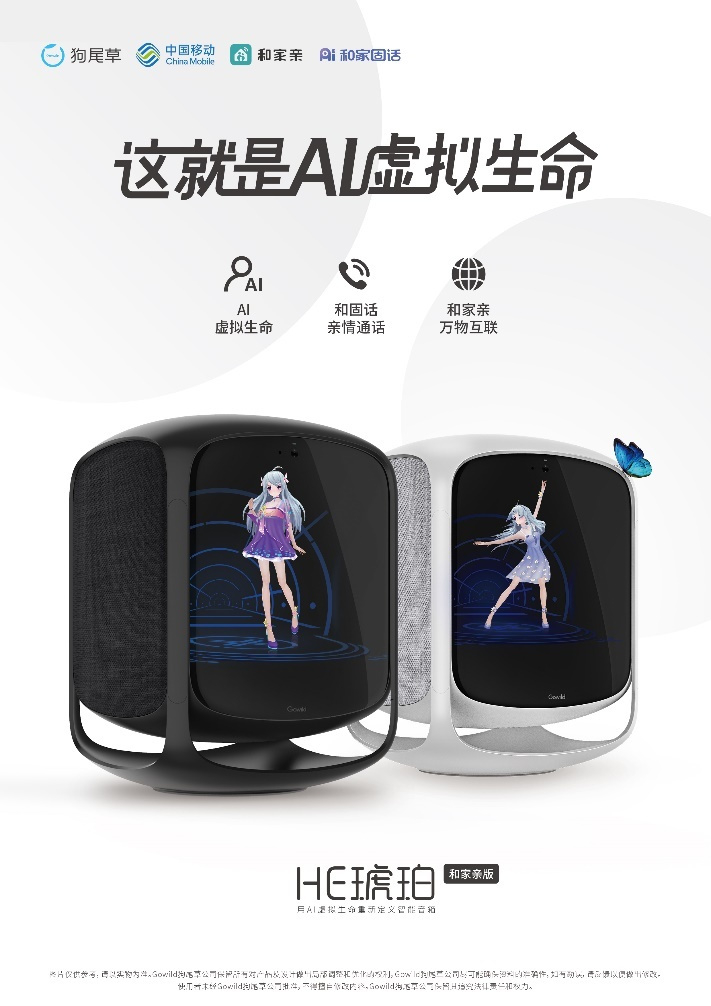 目前,搭载了AI虚拟生命“琥珀虚颜”的智能产品HE琥珀已加入“和家亲”大家庭。基于AI虚拟生命,狗尾草科技与中国移动在“和家亲”万物互联平台、“和家固话”亲情通话等方面开展了业务合作,未来还将进行更多深度定制合作。