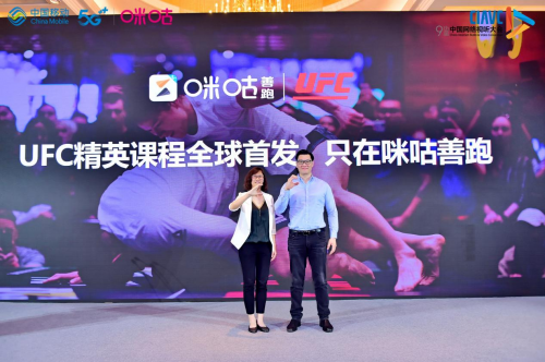 在本次高峰论坛上,大会特别合作伙伴——中国移动咪咕公司发布了关于推动全民健身普及、构建体育产业新生态的一揽子计划。其中,咪咕旗下运动健康平台咪咕善跑联合国际知名职业综合格斗赛事机构UFC的精英训练中心制作的“5G+UFC精英训练课程”进行了全球首发,成为全场最大亮点。