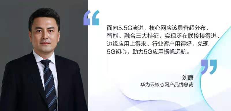 华为云核心网产品线总裁刘康发表题为《超分布智融核心网-兑现5G初心,面向5.5G演进》的演讲