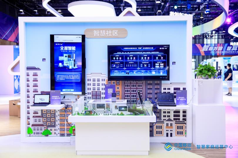智慧社区是中国移动智慧家庭运营中心面向泛家庭智能升级推出的信息化综合解决方案。在智慧社区展区,讲解员通过AR沙盘与线上联动展示社区重点场景,包括超级SIM门禁、智慧停车等安防联动场景,以及社区防疫服务等一站式全域服务。