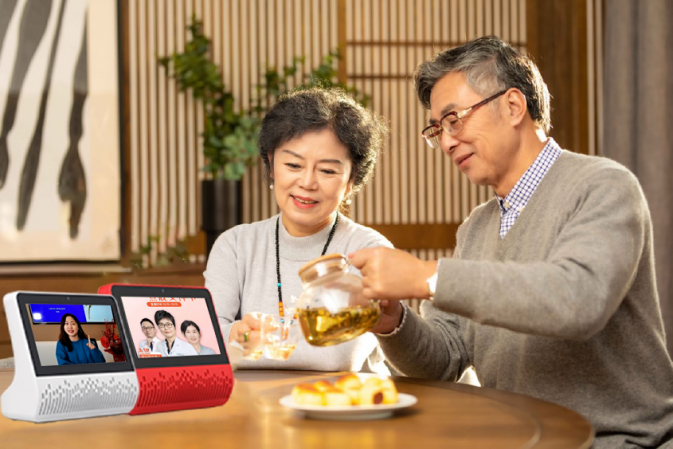 中国移动基于中屏音箱基础服务融合健康、安防、和家固话、咪咕视频等能力,推出老年伴侣产品。老人通过老年伴侣即可满足健康管理、亲情沟通、生活娱乐等多样化需求;遇到老人跌倒、身体不适等无法移动的情况,老人可通过语音实现紧急呼叫子女,向子女求助;子女也可随时通过老年伴侣音箱查看老人居家状态,保障老人居家生活安全。