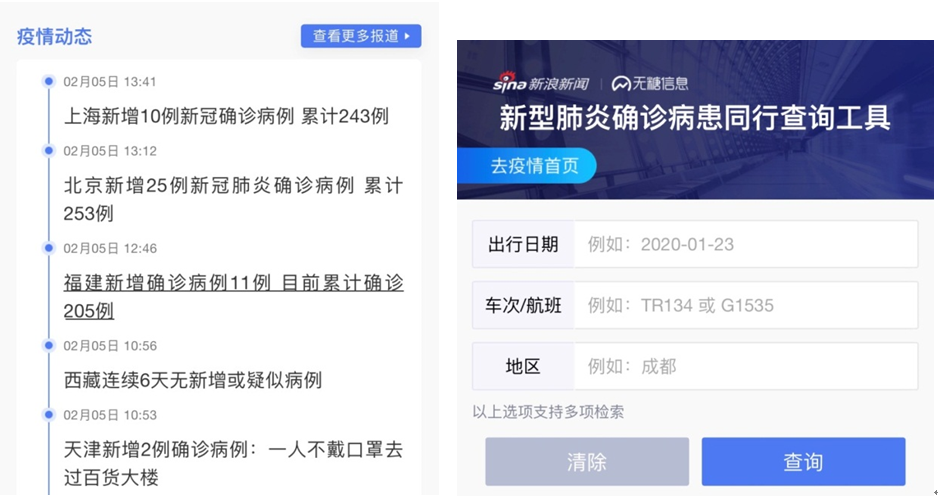 抗击新型冠状病毒肺炎实时动态追踪专题板块主要包括三大模块:疫情地图展示、疫情动态追踪以及病患同行查询工具。中国联通通过整合国家及各省市地区卫健委发布的权威数据,实现了疫情信息的全覆盖与精准上屏,真正做到助力信息精准高效公开。