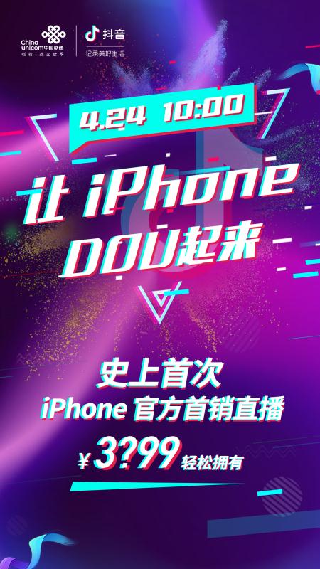 据了解,此次抖音直播将是iPhone史上第一次直播。中国联通将在上海、广东、吉林、湖北四省联动,精选苹果首销百家营业厅,配备最优秀的营业员和最专业的直播设备,打造最棒的首销直播,打造全民iPhone 的狂欢。