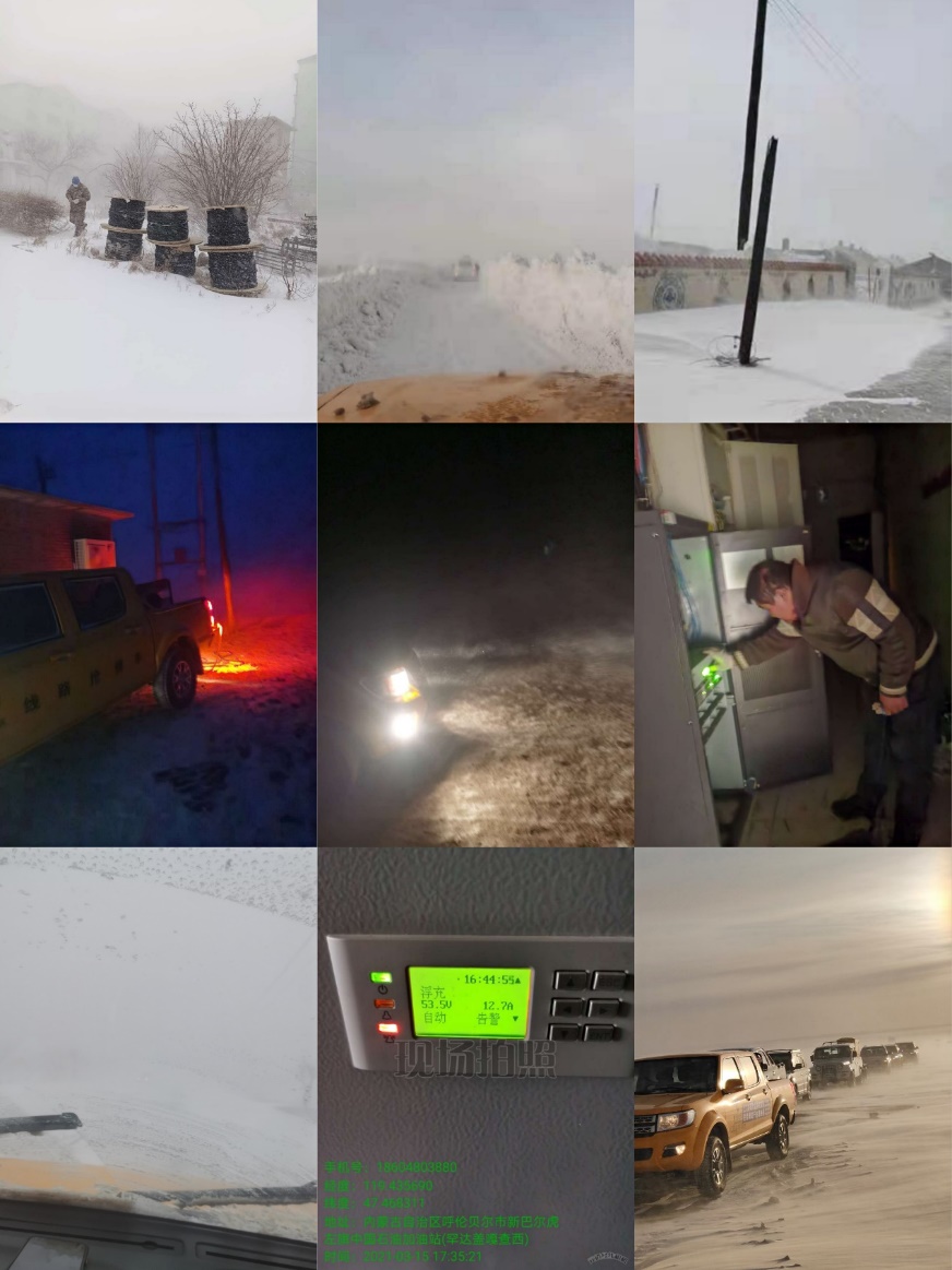沙尘暴袭击之下,内蒙古多地受到影响,威胁到网络的安全运行。其中呼伦贝尔市的风力达到8级以上,多个基站的供电线路中断,白毛风造成公路关闭,室外能见度极低,给现场抢修造成严重困难。维护人员在接到故障派单后,仍克服困难,及时前往现场开展线路抢险、基站发电等,为网络运行安全贡献力量。