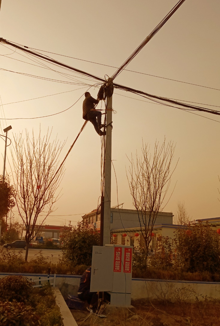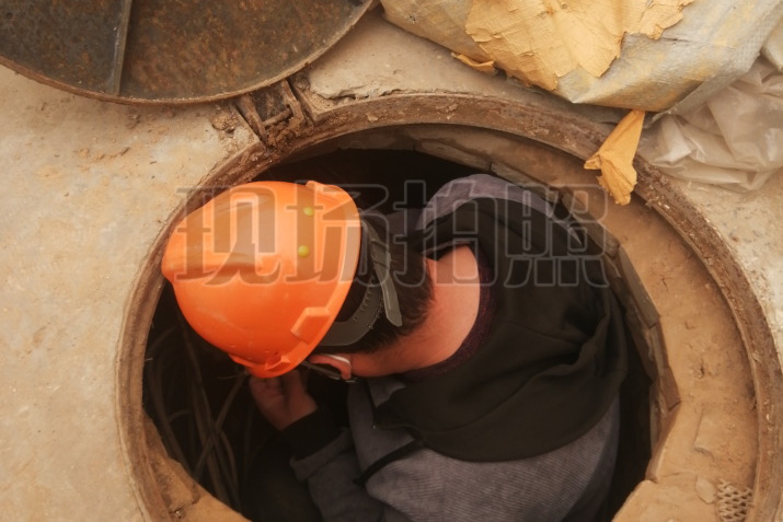 在陕西,维护人员在爬上路杆、钻下井盖,在沙尘和旷野中检测和守卫网络线路。