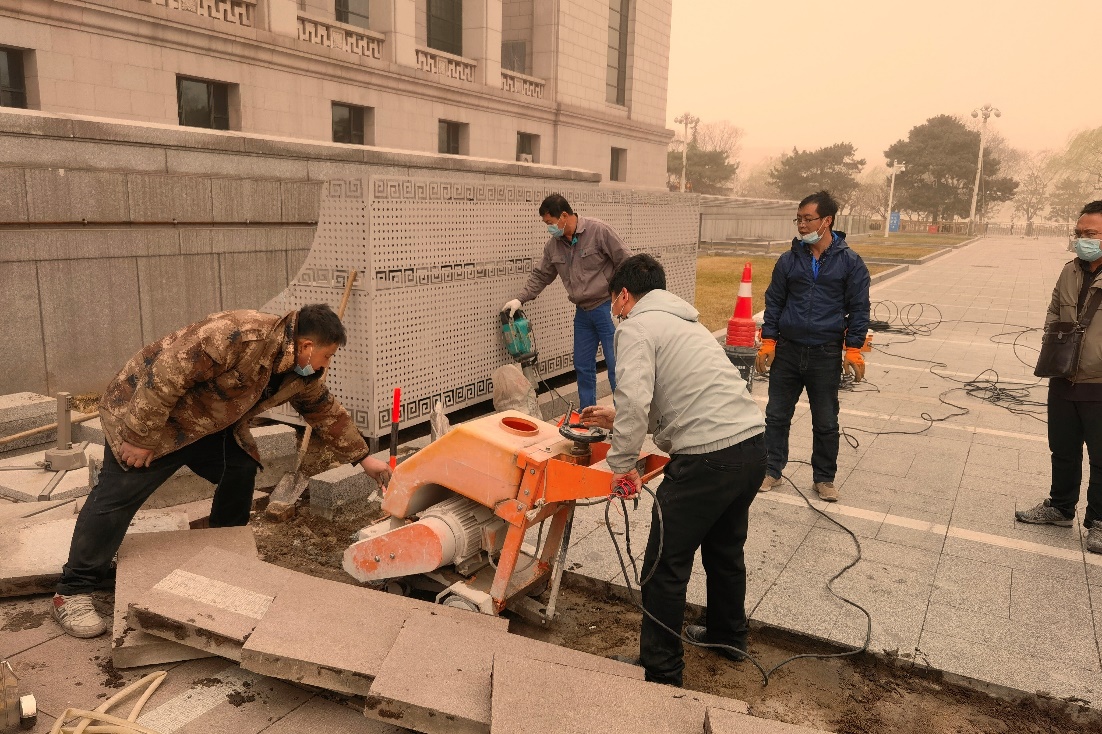 抢修一刻不能停 沙尘只道是寻常