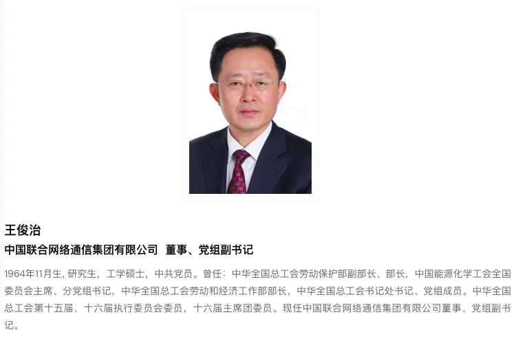 C114讯 11月3日消息(林想)继今年6月中国联通原党组副书记李福申辞任后,这一职位今日迎来了接任者——王俊治。中国联通官网正式公布,王俊治出任中国联合网络通信集团有限公司董事、党组副书记。