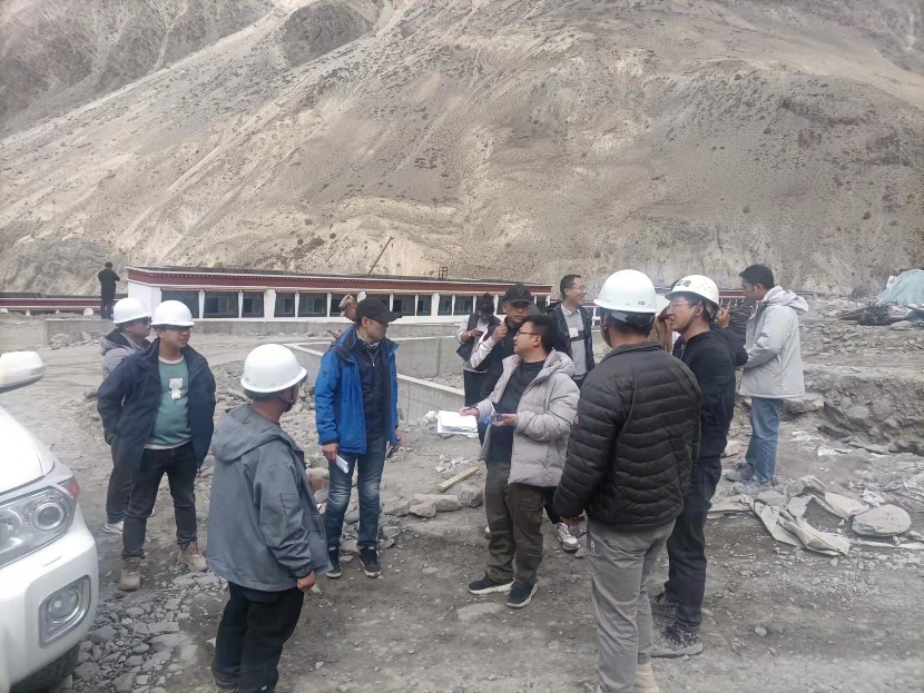 中国联通援藏干部赵殿杰(着蓝色衣服)在阿里札达县调研抵边公路建设情况