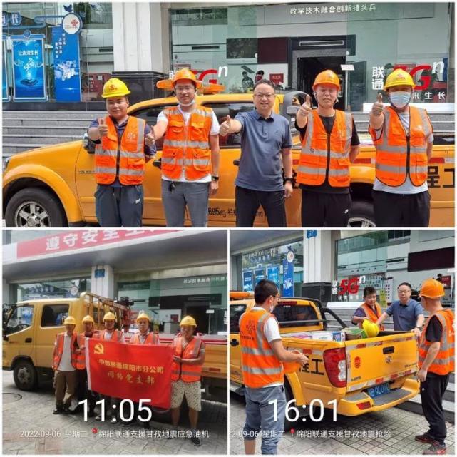 9月6日,四川联通绵阳市分公司上午安排1辆抢险皮卡车、10台8KW发电机驰援甘孜州分公司,下午安排一支由5名应急抢险人员、1辆抢险皮卡车、1套熔接机和OTDR等抢险物资组成的队伍驰援雅安市分公司。