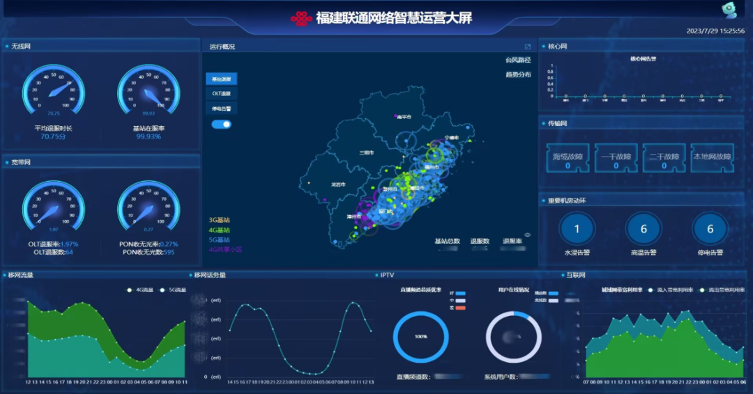在应对今年第5号台风“杜苏芮”的过程中,福建联通充分发挥数字化、网络化、智能化优势,借助自主研发的网络智慧运营大屏、一线运维等网络数字化应用平台,实现了4G/5G精品网、千兆宽带精品网,政企精品网、算力网、核心网、局房动环等网络运行状况的“一屏统览”,并结合故障告警事件GIS地图呈现等方式,实现了故障时间、位置、影响范围等信息的实时展示、快速定位、闭环处理,提升了应对台风的指挥调度能力。