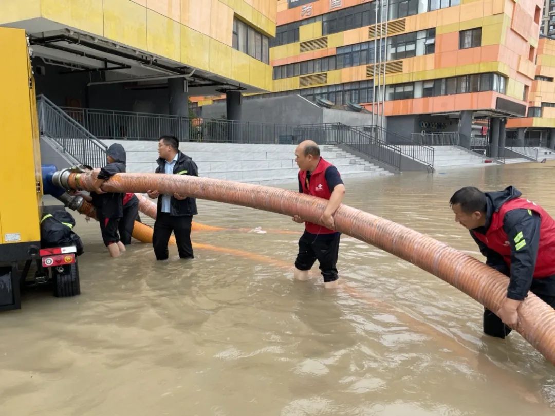 河南联通出动“龙吸水”帮助高新区创新大道小学清理积水