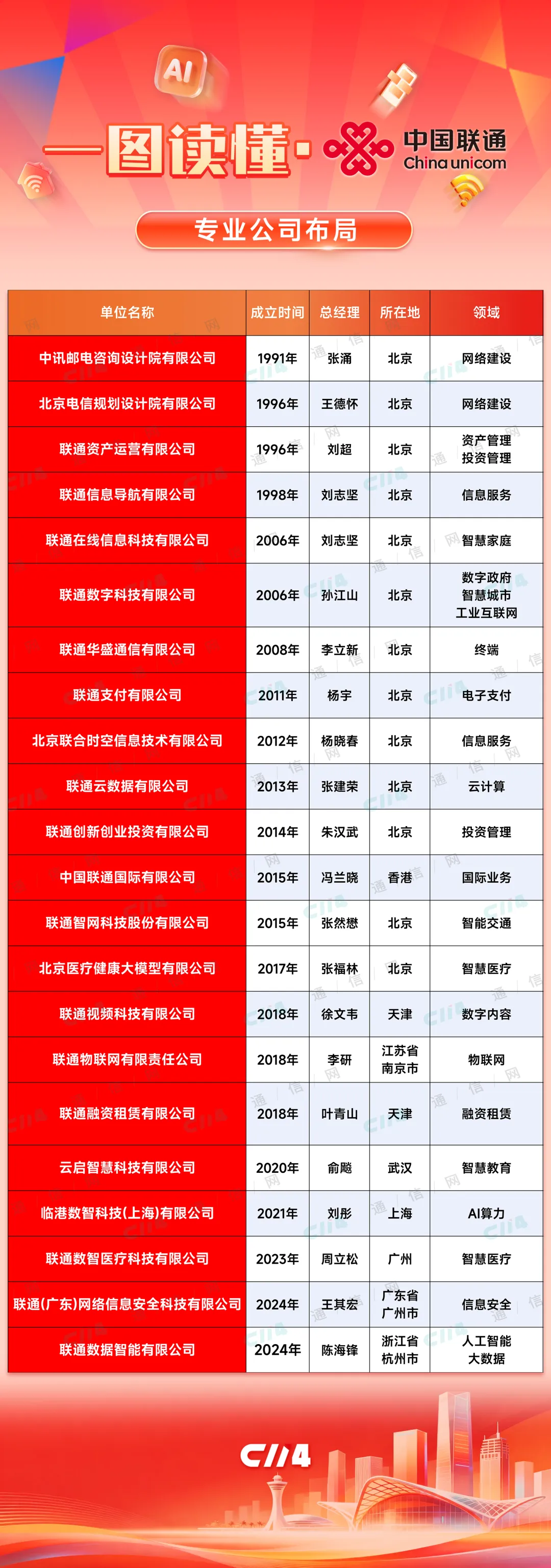 一图看懂中国联通专业公司布局