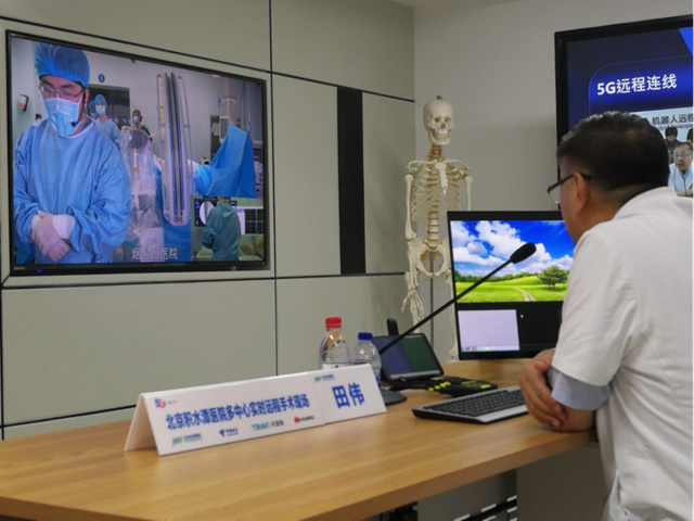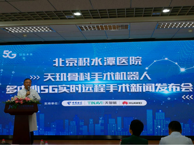 2019年6月27日上午,在北京积水潭医院的机器人远程手术中心,积水潭医院田伟院长通过5G网络接入远程手术服务云平台与嘉兴市第二医院和烟台市烟台山医院同时连接,成功完成了全球首例骨科手术机器人多中心5G远程手术。不同于过去单纯的远程视频会诊指导手术和远程手术规划,此次通过5G网络控制手术机器人,从“遥规划”成为“遥操作”,真正实现了远程操控骨科手术机器人进行实时手术。此次手术借助北京电信5G网络和华为端到端的5G设备完成信号的大带宽、低时延传输,手术结束后田院长表示:“这是一个令人激动的历史时刻,手术效果是教科书级别的,通过机器人手术摆脱了过去单纯依靠医生经验进行操作的历史,将为有效缓解我国医疗资源区域分配不均的问题做出贡献”。通过此次手术标志着我国5G+AI远程医疗达到了一个新高度,5G远程手术技术正式进入临床应用阶段。