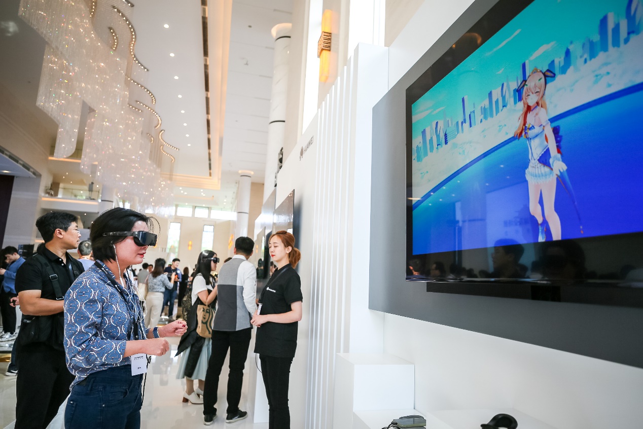 现场体验区为消费者带来了全球首个5G + VR二次元偶像直播,该技术将动捕实验室的动捕数据,利用5G高带宽、低时延的特性,传输至华为Mate30系列5G版手机上,借助麒麟990 5G的优秀算力,实时渲染,实现与虚拟人物肢体的实时映射,再通过VR显示出来,从而将虚拟人物复活,带给消费者前所未有的沉浸式体验。