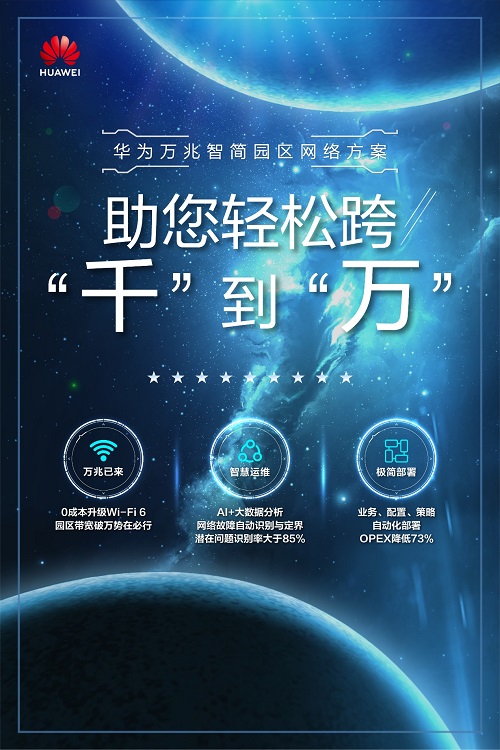 为此,华为推出了万兆智简园区方案,通过华为独家WiFi 6技术,可以构建一张海量吞吐、整网智能、全层次开放的园区网络,不仅性能强大,同时实现极简部署及智慧运维,商务上也极具优势。
