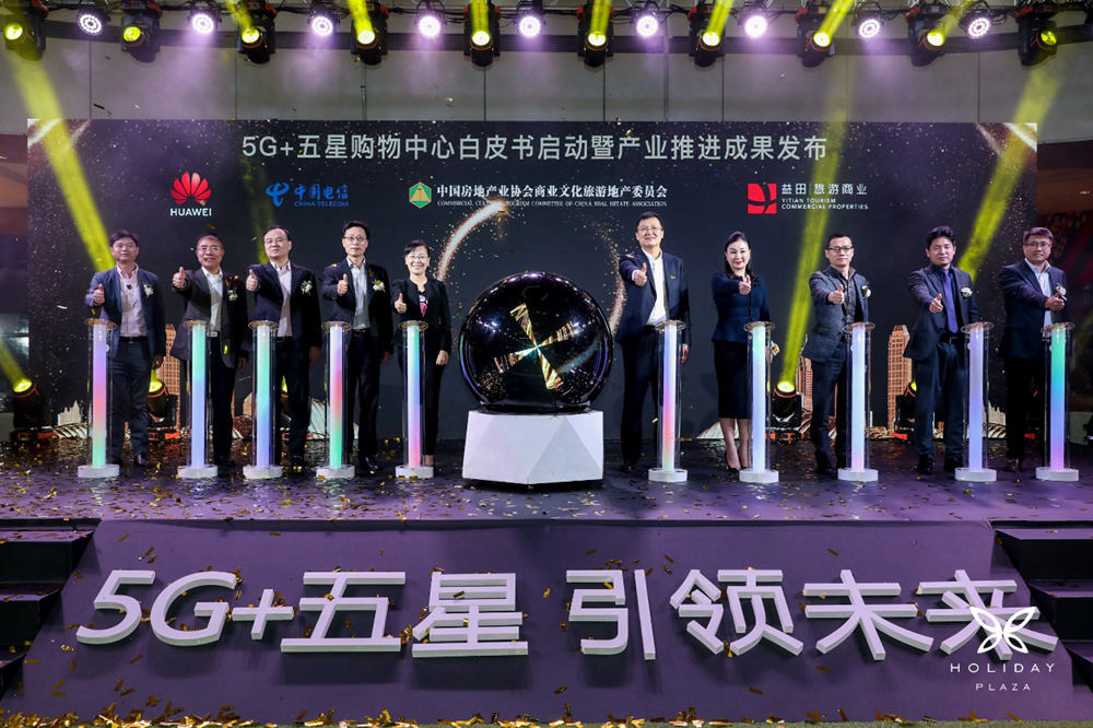 今日,由中国房地产业协会商业文化旅游地产委员会(以下简称“中房协”)携手中国电信、华为、中国信通院、5G应用产业方阵(5G AIA)共同举办的“中国首个商用5G+五星购物中心暨行业白皮书启动会”亮相深圳益田假日广场购物中心。中房协与中国电信为深圳益田假日广场购物中心授予“中国首家商用5G+五星购物中心”称号。