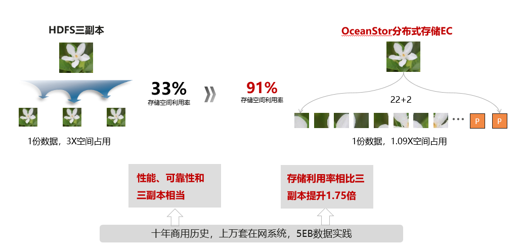 - 传统大数据平台多副本机制,占用大量机房空间