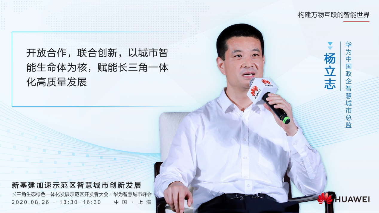 华为中国政企智慧城市总监杨立志在《城市智能生命体 赋能长三角一体化示范区高质量发展》的演讲中表示,智慧城市正在以技术创新引领连锁效应,促进城市的转型发展以及数字化转型。目前把智慧城市群建设,作为推动长三角一体化示范区高质量发展的重要内容,从而发挥它全局支撑、创新驱动以及协同联动的作用,对于推进整个长三角一体化示范区的高质量发展,具有很重要的意义。并在总体思路上,提出以数据环打通资源壁垒。从一体化基础设施、一体化生态休闲、一体化城市服务、一体化运营管理以及一体化产业支撑,五方面着手,构建五位一体的智能生命体,打造长三角一体化的制高点。