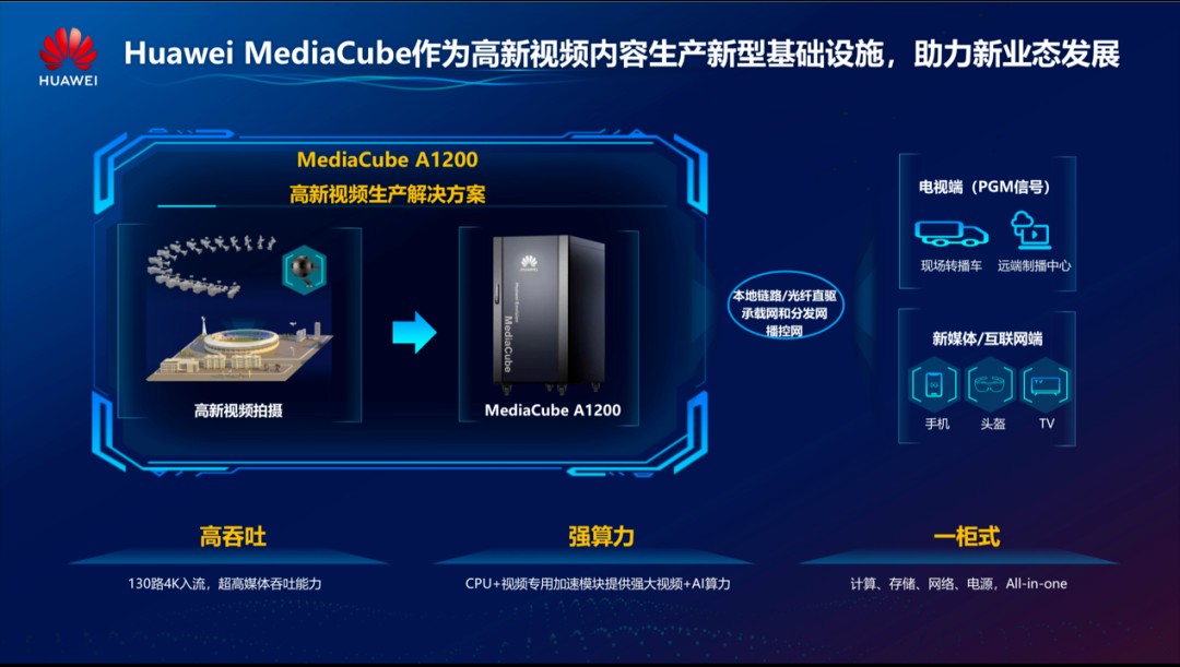 华为一直立足于成为视频行业的技术使能者,希望助力新业态的持续发展。基于多年在硬件基础设施、视频领域专业技术积累,华为正式推出了MediaCube高新视频生产解决方案,以提升高新视频生产效率。