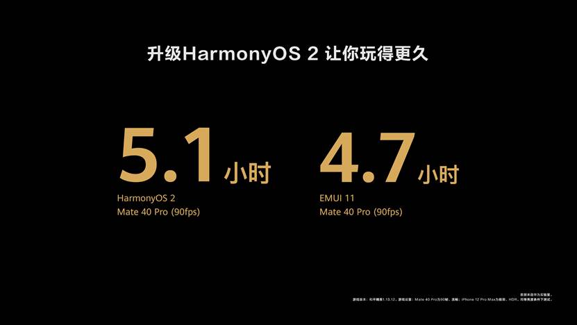HarmonyOS系统流畅度全面提升,手机在使用36个月后剩余空间极小的情况下,依然拥有接近新手机一样的读写速度。HarmonyOS优化了后台应用的保活能力,让任务持久在线,即使用了再多应用,也能实现状态恢复。比如,网购时临时回复微信消息、打开搜索APP查找资料,返回购物APP时可以直接回到上次浏览的界面。此外,HarmonyOS还能让手机续航更持久:使用搭载HarmonyOS的Mate40 Pro进行《和平精英》游戏,续航时间可达5.1小时,比同等条件下搭载EMUI11的Mate40 Pro提升0.4小时。