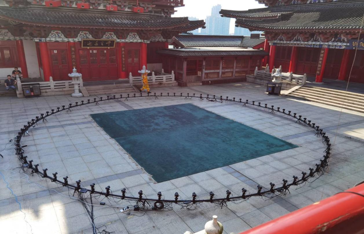 自由视角拍摄:自由视角前端的拍摄子系统,采用90台环形架设的4K超高清摄像机群,极速对焦、精准捕捉表演者动作细节,随后MediaCube对采集到的近百路超高清视频流做实时媒体处理,生成时空凝结、动态流转等自由视角特色效果,为观众呈现每一个精彩瞬间。