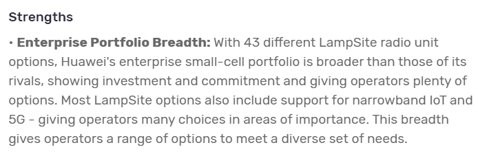 据笔者了解,GlobalData分析师在《Huawei Small Cell Portfolio》产品报告中给出了华为LampSite产品竞争优势的详细解读: