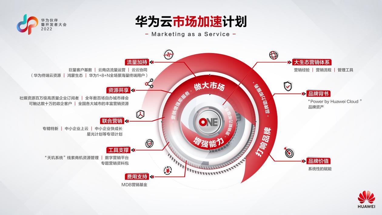 为帮助华为云生态伙伴获得客户认可和更多市场机会,华为云将华为在To B领域积累的超过30年的品牌和营销经验、资源与工具,系统化地组装起来,形成一种Marketing服务,即Marketing as a Service,帮助伙伴更好、更快地赢得市场。