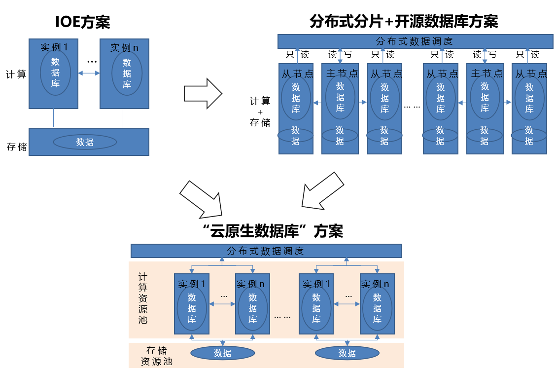 自1970年IBM的数学家Edgar F. Codd提出关系模型,关系数据库已有50余年历史,期间关系模型没有发生大的变化,而数据库体系架构则经历了以ORACLE为代表的商业数据库(IOE)—>以互联网产商去IOE为代表的分布式架构+开源数据库—>云原生数据库的三次大的转变,以适应业务的要求。