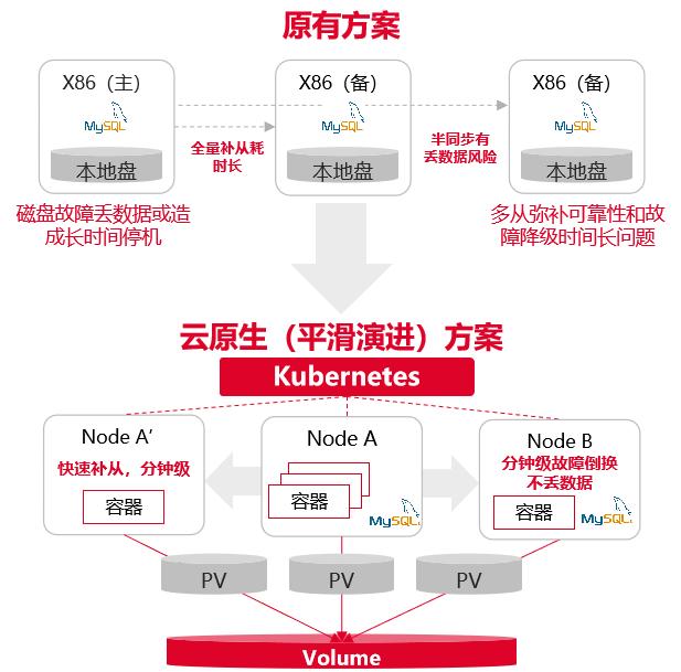 连续性故障问题:传统的故障处理方式是使系统运行在降级状态,但MySQL基于本地盘的部署方式从降级状态恢复到正常状态需要全量数据恢复,导致系统降级状态时间极长,二次故障风险大增;
