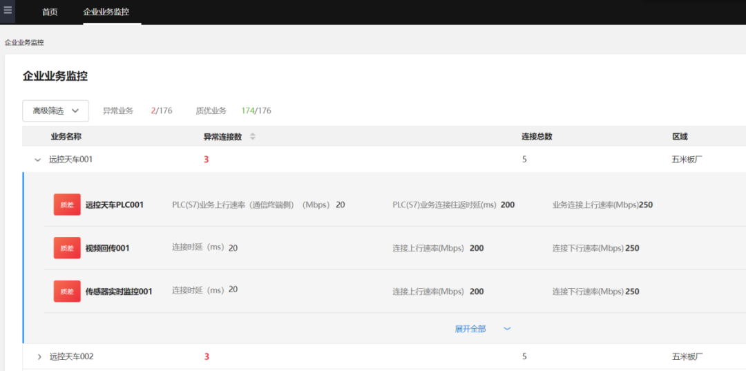 M+方案支持对智慧园区无线网(5G)、园区网(Wifi)以及固网(无源光网络PON)的一站式统一管理,可以对于通信终端、网络设备、企业业务设备(摄像头、可编程逻辑控制器PLC等)的资源状态、连接状态、无线性能进行连接SLA监控。基于灵活的监控规则自定义能力和AI算法加持,可实时预警故障风险,及时发现连接故障,做到风险早识别、发现即诊断。