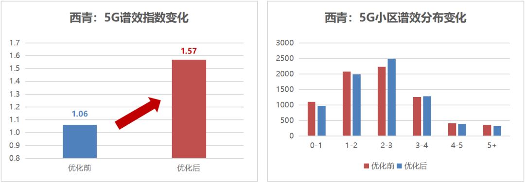 以天津西青分公司为例,该区域占地557平方公里,常住人口120万,内有8个党政机关、16个酒店宾馆、14个学校、8个商业购物区、5个医院、7个公共场所、4条交通干线、4条城市地铁、1个交通枢纽等。通过栅格化管理,该区域从传统3个网格扩充至687个栅格。“一格一策”,实施谱效优化方案后,区域级谱效提升45%, NR日均流量提升3%+。