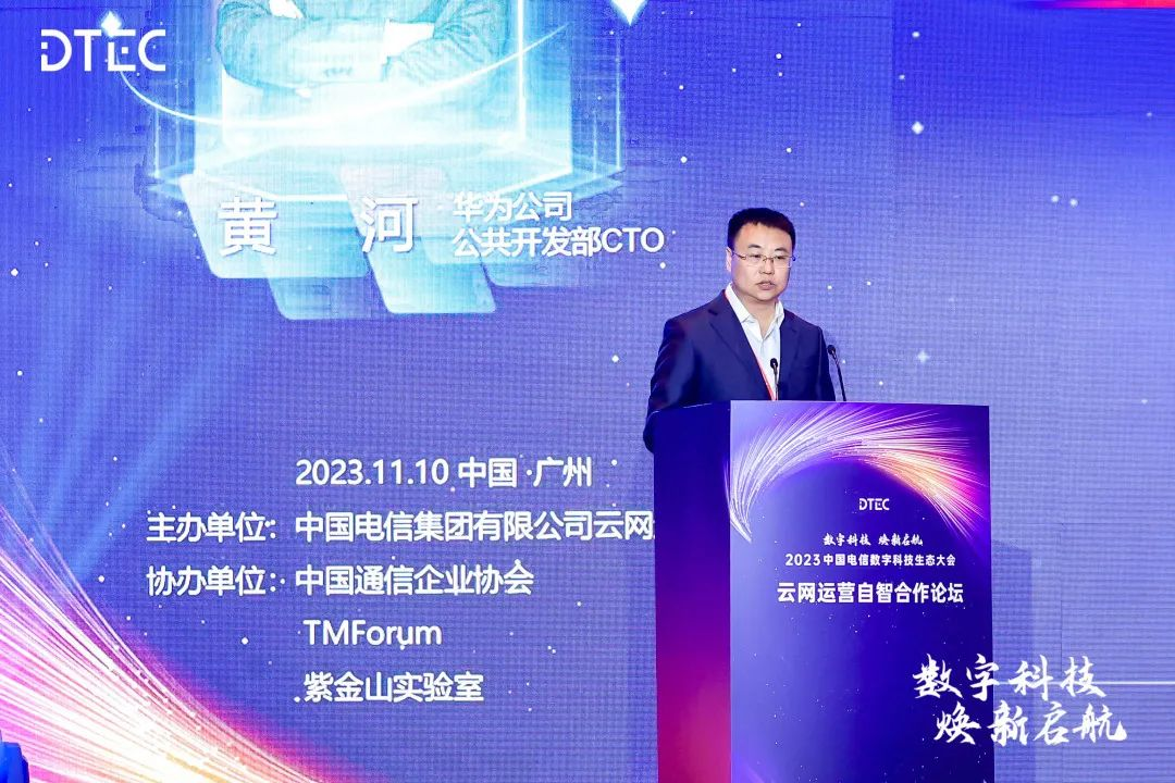 2023中国电信数字科技生态大会,于11月10日-11月13日在广州召开,华为公共开发部CTO黄河、电信系统部副部长毛中军受邀出席云网运营自智合作论坛。
