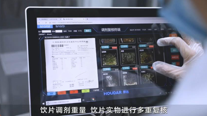 在对接医院HIS系统获得患者药方后,生产任务便开始了。当煎锅接二连三进入调剂通道,利用5G数采和远控的能力,控制420多种饮片,精准落入对应的煎锅,每味饮片的重量误差率控制在2%以内,并且每落入一味饮片,在锅内的高清照片就要上传一次到边缘云平台。再通过AI视觉检测,将处方、饮片照片及饮片实物进行三重复核,确保调剂零误差。