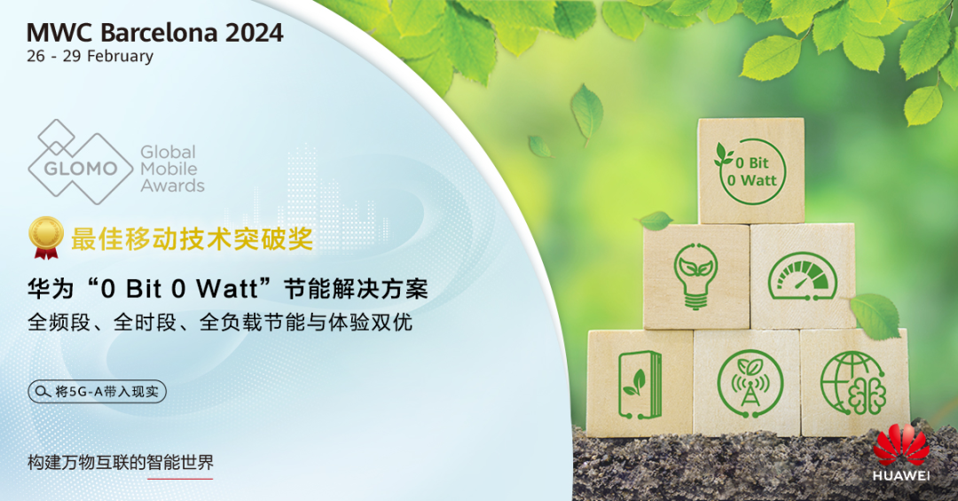 华为“0 Bit 0 Watt”节能解决方案荣获GSMA GLOMO“最佳移动技术突破奖”。“0 Bit 0 watt”是业界首个荣膺此项殊荣的节能解决方案,代表着行业对华为领先业界的Native Green绿色原生系列化节能技术创新、帮助全球运营商建立体验与节能双优网络贡献的绝对认可。