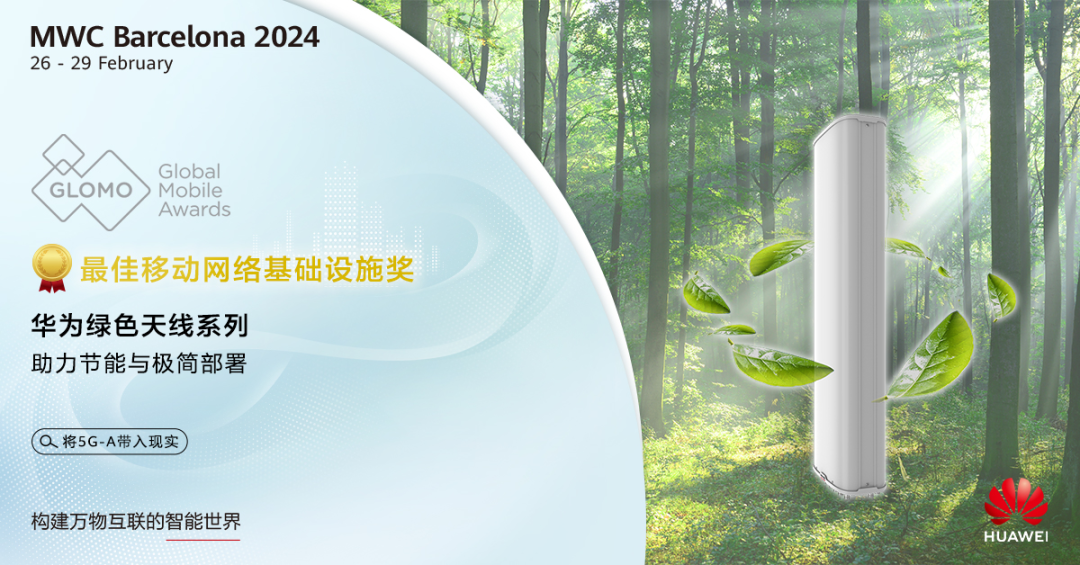 华为绿色天线系列产品荣获GSMA GLOMO“最佳移动网络基础设施奖”(Best Mobile Network Infrastructure),表彰华为长期围绕基站天线在效率、性能和集成度等方向持续突破,帮助运营商打造高能效,高性能、极简、易演进的5G网络。