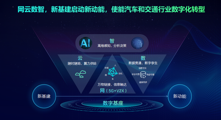 “网”实现5G+V2X融合组网,链接人-车-路-环;“云”提供随时随地的算力供给,支撑各类数字化应用;“数”,即大数据技术,可以实现各类数据贯通,建造一个与物理世界对应的数字孪生智能交通体;而人工“智”能,则在车路两端,实现全面的高维感知、分析和决策,为交通安全和出行服务保驾护航。