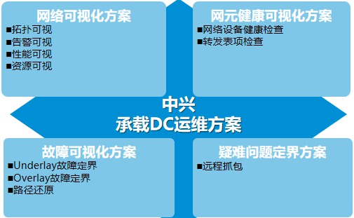 中兴通讯数据中心承载网智能运维解决方案从整体到局部,可视化结合主动探测,全方位解决客户的运维痛点。