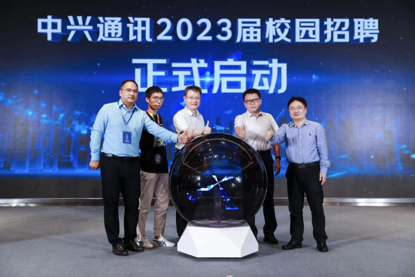 在颁奖典礼的尾声,领导嘉宾及特等奖获得者一起上台,按下启动球,随着球内倒计时结束,宣布“中兴通讯2023届校园招聘正式启动”,为即将到来的新一届校园招聘揭开序幕。