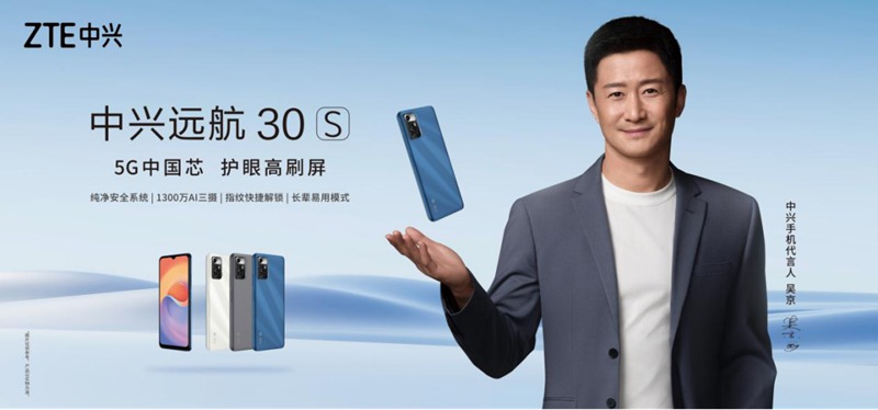 8月23日,吴京代言中兴手机旗下远航30S手机正式发布。作为一款千元档5G手机,该产品搭载国产5G芯片平台,从“芯”定义纯真国货,并配备高清护眼大屏、纯净安全系统、1300万高清主摄及多功能AI三摄组合,同时兼顾了丰富功能。在帮助跨越老人数字鸿沟的背景下,中兴手机还联合中国移动、紫光展锐,在远航30S上专为老年人打造了“5G视频客服远程助老”等特色功能,守护老年智能生活,助力5G普惠。