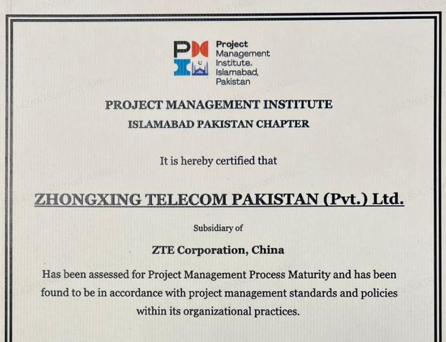 中兴通讯巴基斯坦子公司成立于 1999 年,多年来开拓创新,锐意进取,实现稳步发展。今年2月,公司与PMI巴基斯坦分会展开积极合作,PMI巴基斯坦分会根据全球项目管理实践标准,对中兴通讯项目管理流程的成熟度和基准进行评估,此次评估有助于改进项目管理工作可能存在的缺陷,健全项目管理制度,推进项目精细化管理,同时加强对项目经营管理工作的策划、指导和监控,实现全方位和全过程的管理,形成制度管人、流程做事的良好局面,进而提升中兴通讯在巴基斯坦的整体项目管理水平和交付能力。