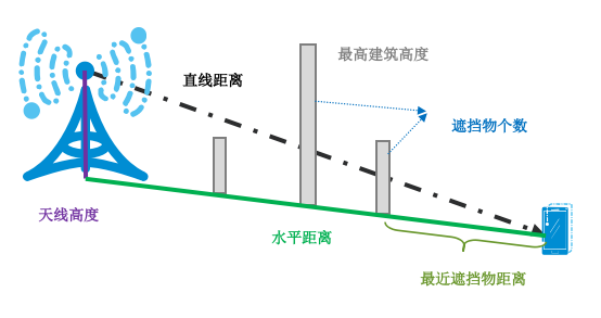 对于MR数据缺失的场景,平台也支持射线跟踪模型的覆盖预测。射线跟踪模型基于无线传播理论,搜索从天线发射点到终端接收点主要的直射、反射和绕射路径,计算合成最终的接收信号强度。射线跟踪模型依赖准确的电子地图和工参,不需要MR数据,因此可以与上述的两种预测方法形成互补。