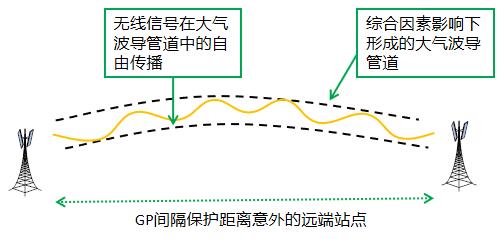 大气波导现象是在一定的气象条件下,近地电磁波受到大气折射的影响,导致其传播轨迹弯向地面,当曲率超过地球表面曲率时,电磁波部分会被陷获在一定厚度的大气薄层内,就像电磁波在金属波导管中传播一样,这种现象称为电磁波的大气波导传播。大气波导现象使得雷达有可能观测到数倍于正常探测距离处的目标,对于5G TNR通信系统来说,会造成远距离同频上下行交叉时隙干扰。