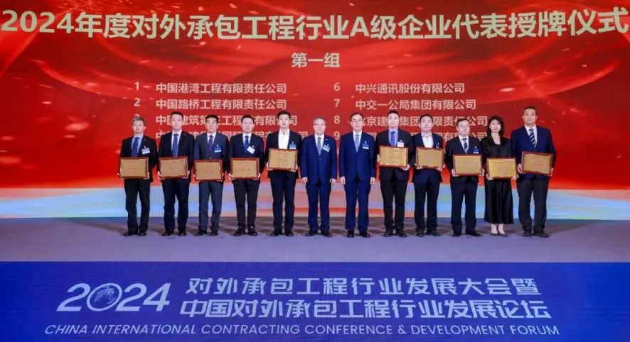 大会还发布了“对外承包工程行业A级企业”等企业排名,中兴通讯成功上榜,并作为获奖企业代表现场接受授牌。